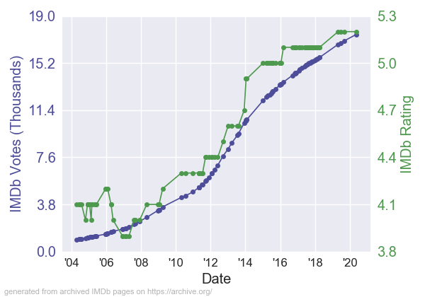 (Wait, this one also has that same 2012-2014 inflection. Looking through other films it really doesn’t seem that common. Just wait for this theory: The Blue Lagoon: Awakening, the totally unrelated third film made by Lifetime … came out in 2012. So when that came out people went and watched the whole series, and rated the film. That is blowing my mind.)