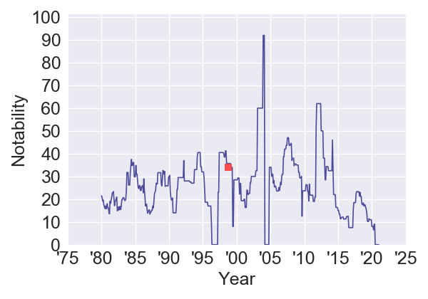 (The genre has certainly been relegated to things like Shudder in recent years, although Blumhouse has busted out a few (which would also mean low notability as they operate on a shoestring budget). The big bump around 2004 I think might be things like Hostel where there was a flurry of torture porn all of a sudden. You can also see how it died in the mid-90s before Scream.)