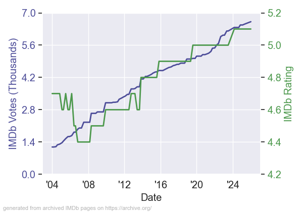 Future BMT: 74.8 The Turning (2020), 72.5 Zoom (2006), 69.6 Gulliver’s Travels (2010), 67.3 Confessions of a Teenage Drama Queen (2004), 66.3 102 Dalmatians (2000), 65.2 Diary of a Wimpy Kid: The Long Haul (2017), 64.2 Valentine (2001), 57.9 The NeverEnding Story II: The Next Chapter (1990), 55.5 Hanging Up (2000), 55.3 Eye of the Beholder (1999), 55.2 Snow Dogs (2002), 54.3 The Divorce (2003), 53.9 Abandon (2002), 53.3 The Stepford Wives (2004), 52.4 Addicted (2014), 50.8 Freedomland (2006), 50.0 Kull: The Conqueror (1997), 49.9 King Solomon’s Mines (1985), 49.5 Thomas and the Magic Railroad (2000), 48.7 The Jungle Book 2 (2003)