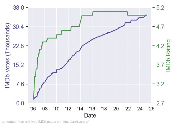 StreetCreditReport.com – BMeTric: top 9.2%; Notability: top 34.4%; Rotten Tomatoes: top 6.9%; Higher BMeT: Date Movie, The Wicker Man, Ultraviolet, Pledge This!, Little Man, Basic Instinct 2, Material Girls, Larry the Cable Guy: Health Inspector, Zoom, The Shaggy Dog, Big Momma’s House 2, DOA: Dead or Alive, The Santa Clause 3: The Escape Clause, Black Christmas, Pulse, Crossover, The Marine, Phat Girlz, Scary Movie 4, Eragon, and 3 more; Higher Notability: Poseidon, The Da Vinci Code, Eragon, The Fast and the Furious: Tokyo Drift, Scary Movie 4, The Wild, Click, The Pink Panther, Smokin’ Aces, Zoom, The Guardian, The Black Dahlia, School for Scoundrels, The Shaggy Dog, Just My Luck, All the King’s Men, Happily N’Ever After, Lady in the Water, The Santa Clause 3: The Escape Clause, Factory Girl, and 66 more; Lower RT: The Contract, Pledge This!, Crossover, Material Girls, The Covenant, Zoom, Larry the Cable Guy: Health Inspector, Big Momma’s House 2, Basic Instinct 2, Deck the Halls, Happily N’Ever After, Date Movie, Van Wilder: The Rise of Taj, When a Stranger Calls, Ultraviolet, See No Evil, Annapolis; Notes: We’ve seen 8 of those 20 higher BMeT films, but I’ve seen Santa Clause 3 and Scary Movie 4 on my own time. We’ll have to get back to those at some point. The 00s were nuts though, those are some terrible movies.
