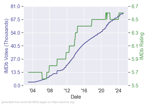 (But wait a minute, this movie isn’t there?! Yeah, you see the actual cycle is “How haven’t se done this?!” but that like … isn’t a thing. So for now I just wanted to get a sense of how we were doing on the 50+ BMeTric films. This is probably the best we had, with something like The Karate Kid Part III or Biker Boyz being pretty decent alternatives.)