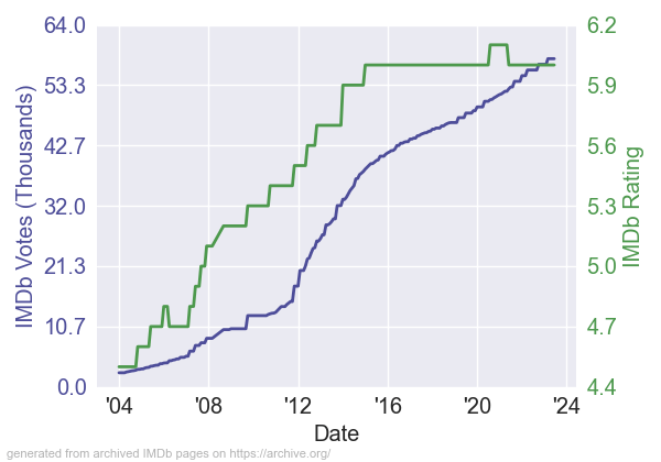 Welcome to Earf (HoE Number 22) – The shortest path through The Movie Database cast lists using only BMT films is: Russell Crowe is No. 6 billed in Kraven the Hunter and No. 2 billed in Virtuosity, which also stars William Forsythe (No. 5 billed) who is in 88 Minutes (No. 5 billed) which also stars Leelee Sobieski (No. 3 billed) who is in Here on Earth (No. 1 billed) => (6 + 2) + (5 + 5) + (3 + 1) = 22. If we were to watch The Eye we can get the HoE Number down to 15.