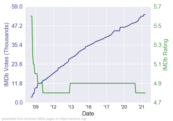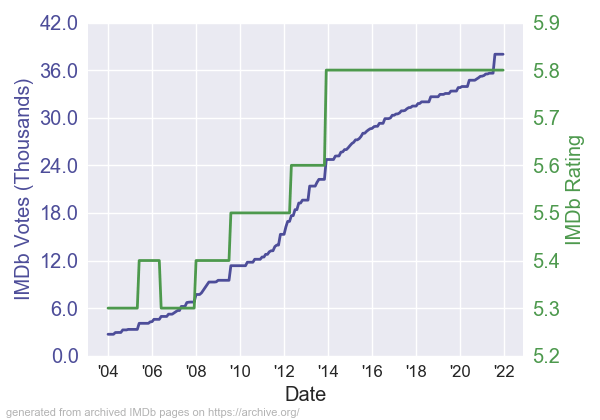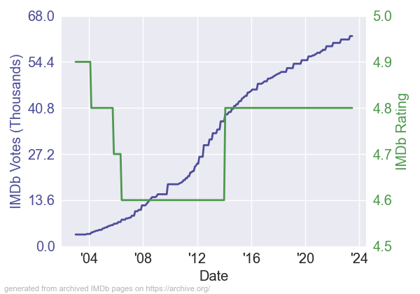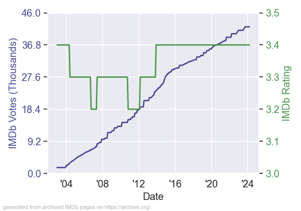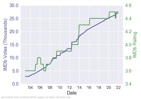 StreetCreditReport.com – BMeTric: top 0.8%; Notability: top 26.8%; Rotten Tomatoes: top 1.7%; Higher BMeT: The Room, Gigli; Higher Notability: Dickie Roberts: Former Child Star, Gods and Generals, Bad Boys II, The Matrix Revolutions, Hollywood Homicide, Scary Movie 3, Brother Bear, Cheaper by the Dozen, Duplex, Timeline, Agent Cody Banks, View from the Top, Marci X, Legally Blonde 2: Red, White & Blonde, National Security, Cradle 2 the Grave, Head of State, Malibu’s Most Wanted, Mona Lisa Smile, Daddy Day Care, and 47 more; Lower RT: Dorm Daze, The Foreigner, Hangman’s Curse, Gold Diggers; Notes: I did confirm, Uwe Boll never played on television in the 90s, which makes sense, all of his major films came in the 00s basically. Seen both the higher BMeTs, but I haven’t seen any of the lover RTs which is crazy. Well … not that crazy, I don’t think any of those four were released widely, so they’d have to be Friends.