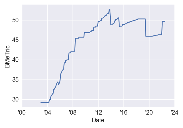 Future BMT: 54.5 Eye of the Beholder (1999), 54.0 Downhill (2020), 49.2 The Omen (2006), 47.1 Nine Months (1995), 44.8 Catch That Kid (2004), 44.4 Brick Mansions (2014), 43.1 Diabolique (1996), 43.1 Sleepless (2017), 43.0 Village of the Damned (1995), 41.8 I Think I Love My Wife (2007)