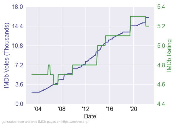 StreetCreditReport.com –BMeTric: top 24.8%; Notability: top 8.0%; Rotten Tomatoes: top 27.1%; Higher BMeT: Date Movie, The Wicker Man, Ultraviolet, Pledge This!, Little Man, Basic Instinct 2, Material Girls, Zoom, Big Momma’s House 2, The Santa Clause 3: The Escape Clause, Black Christmas, The Marine, The Shaggy Dog, DOA: Dead or Alive, Pulse, Phat Girlz, Eragon, Scary Movie 4, The Grudge 2, Van Wilder: The Rise of Taj, and 42 more; Higher Notability: Poseidon, The Wild, The Da Vinci Code, Eragon, Scary Movie 4, The Fast and the Furious: Tokyo Drift, Happily N’Ever After, Click, The Pink Panther, Smokin’ Aces, The Guardian, The Black Dahlia, The Santa Clause 3: The Escape Clause, Garfield: A Tail of Two Kitties, Zoom, The Shaggy Dog, A Good Year, Lady in the Water, Factory Girl, All the King’s Men; Lower RT: The Contract, Kiss Me Again, Karla, Pledge This!, Material Girls, Happily N’Ever After, The Covenant, Zoom, Big Momma’s House 2, Deck the Halls, Basic Instinct 2, Date Movie, Van Wilder: The Rise of Taj, Gray Matters, Ultraviolet, When a Stranger Calls, See No Evil, Annapolis, Stay Alive, Pulse, and 47 more; Notes: Way higher IMDb rating that I expected, but sticking nicely below/around 6.0. The Notability is off the chain though! Solid for a comedy.