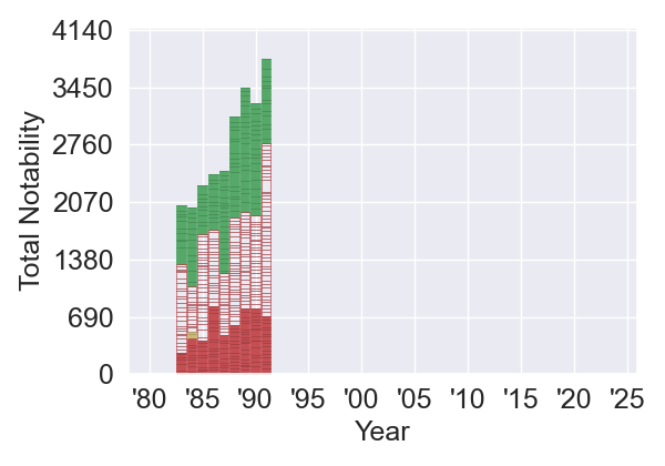StreetCreditReport.com – BMeTric: top 1.3%; Notability: top 3.4%; Rotten Tomatoes: top 0.0%; Higher BMeT: Jaws 3-D, Smokey and the Bandit Part 3, Superman III; Higher Notability: Superman III, Curse of the Pink Panther, Krull, Deal of the Century, Doctor Detroit, Flashdance, The Sting II, D.C. Cab; Notes: Don’t worry, Smokey and the Bandit Part III is on the docket. Looking at the 90s television data is kind of funny. The three Smokey and the Bandit films played 81, 47, and 20 times. Almost perfectly 50% of the prior one. The first is a classic obviously.