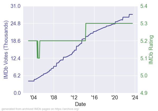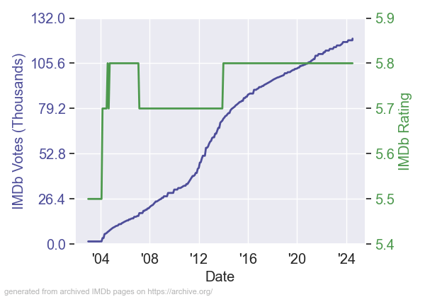 Future BMT: 96.3 Disaster Movie (2008), 93.6 Date Movie (2006), 90.7 Vampires Suck (2010), 90.1 House of the Dead (2003), 89.0 BloodRayne (2005), 87.9 Winnie-the-Pooh: Blood and Honey (2023), 86.9 Street Fighter (1994), 86.6 The Adventures of Sharkboy and Lavagirl 3-D (2005), 84.1 Spy Kids 4: All the Time in the World (2011), 83.1 Inspector Gadget (1999), 81.5 You Got Served (2004), 80.0 Jonas Brothers: The 3D Concert Experience (2009), 80.0 Jeepers Creepers III (2017), 79.5 Daddy Day Camp (2007), 79.4 Home Alone 3 (1997), 79.3 Boogeyman (2005), 78.7 Shark Night (2011), 78.2 The Oogieloves in the Big Balloon Adventure (2012), 78.1 Who’s Your Caddy? (2007), 78.0 Jeepers Creepers: Reborn (2022)