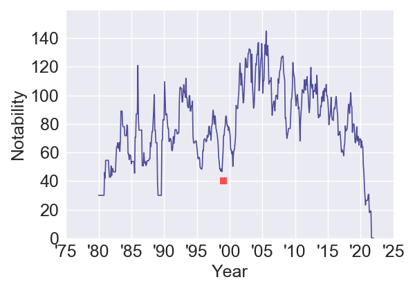 StreetCreditReport.com – BMeTric: top 30.4%; Notability: top 34.4%; Rotten Tomatoes: top 32.6% Higher BMeT: Baby Geniuses, Inspector Gadget, Universal Soldier: The Return, Wing Commander, Wild Wild West, The Haunting, Dudley Do-Right, Bats, The Rage: Carrie 2, Virus, The Mod Squad, The Bachelor, Breakfast of Champions, The Astronaut’s Wife, Eye of the Beholder, Superstar, My Favorite Martian, Random Hearts, Teaching Mrs. Tingle, Simply Irresistible, and 32 more; Higher Notability: Wild Wild West, Inspector Gadget, The 13th Warrior, End of Days, My Favorite Martian, Snow Falling on Cedars, Idle Hands, Joan of Arc, The Haunting, The Story of Us, The Out-of-Towners, Crazy in Alabama, Double Jeopardy, Random Hearts, Instinct, Stigmata, Dudley Do-Right, In Too Deep, The General’s Daughter, The Other Sister, and 9 more; Lower RT: Baby Geniuses, The Mod Squad, Universal Soldier: The Return, Friends & Lovers, The Bachelor, Eye of the Beholder, Wing Commander, Chill Factor, Virus, Body Shots, End of Days, Jawbreaker, My Favorite Martian, The King and I, Lost & Found, Molly, Gloria, Idle Hands, Random Hearts, The Astronaut’s Wife and 42 more; Notes: Low BMeTric, but a surprisingly high Notability, especially since this is the first Nicholas Sparks film. Looking at this list mostly reminds me that we have a ton to do still as far as 1999 is concerned.